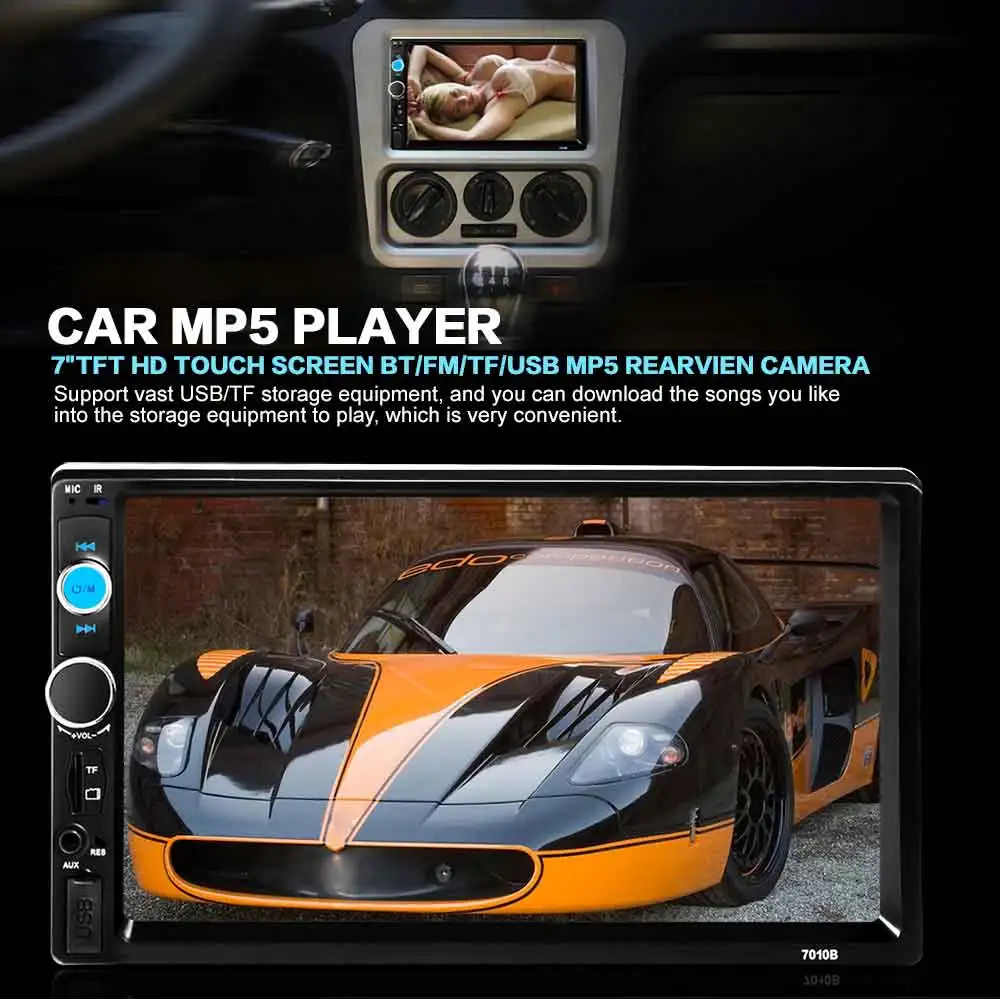 2016 HOT 7" Inch Car Radio 12V TFT Touch Screen Registered Bluetooth 2.0 Car Stereo Audio Player In-dash 2 Din FM Car Radio Double DIN Video Player Support Rear View Camera