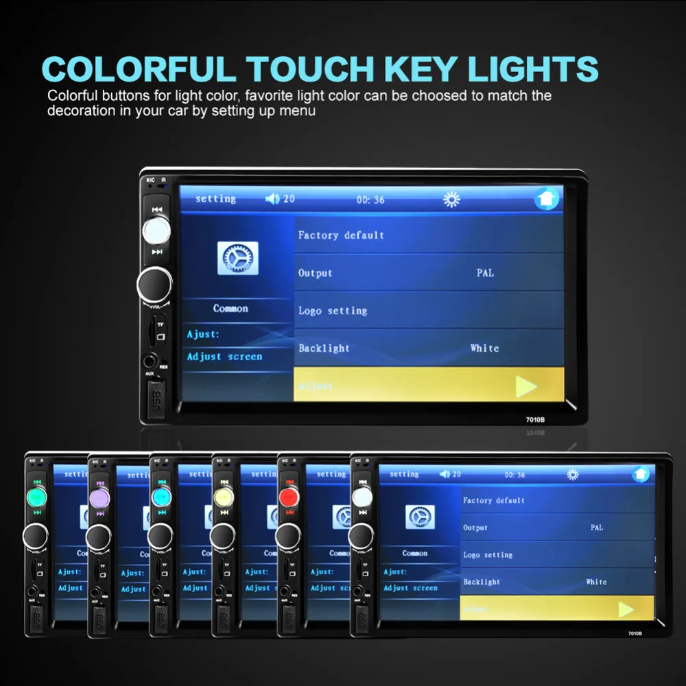 2 Din 7" HD 1080P Car Video Player Radio Stereo Mp5 Player Touch Screen USB Bluetooth AUX/FM/USB/MMC Support Rear View CameraUSD 104.28/piece